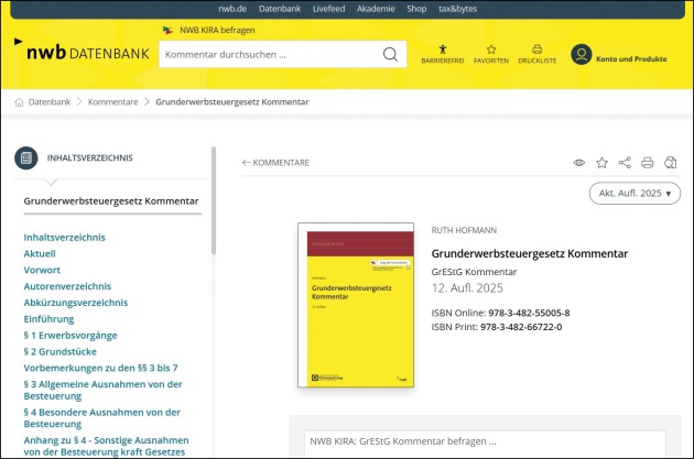 Ab sofort dürfen Sie sich als Abonnent des Themenpakets NWB Erben und Vermögen über weitere kostenfreie Inhalte in Ihrer Datenbank freuen: den Kommentar zum Grunderwerbsteuergesetz sowie das Buch Immobilien klug vererben.