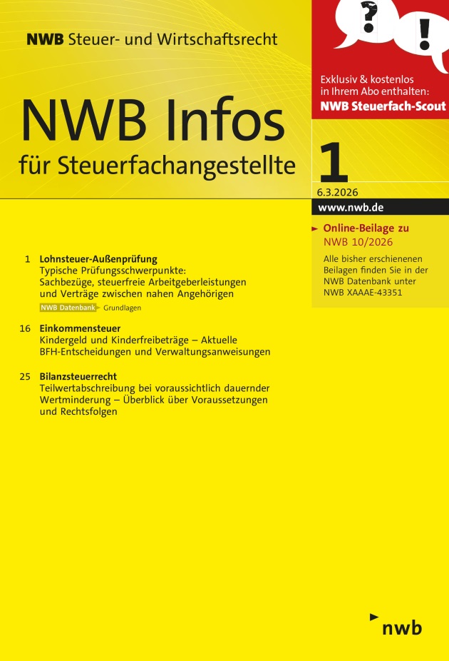 Die aktuelle Ausgabe „NWB Infos für Steuerfachangestellte – 1/2026“ beinhaltet die folgenden Beiträge: