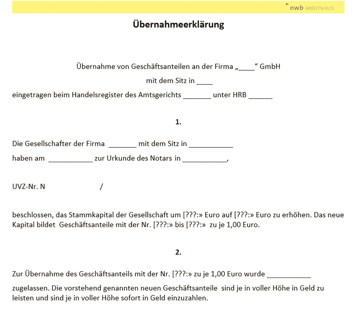 GmbH: Übernahmeerklärung Geschäftsanteil – Muster